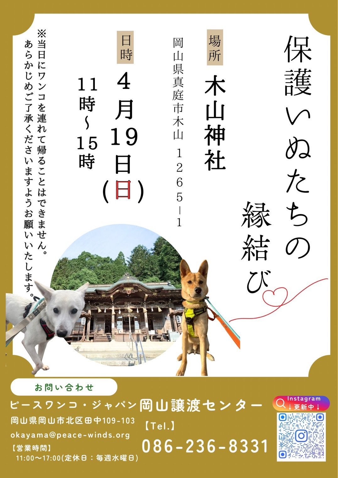 【日程】2026年4月19日(日) (※雨天決行)【時間】11時~15時【会場】木山神社 (真庭市木...