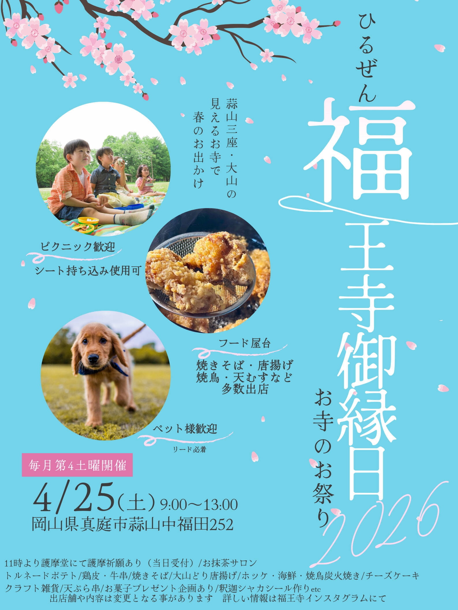 【日程】2026年4月25日(土)【時間】9:00 ~ 13:00【会場】福王寺(真庭市蒜山中福田2...