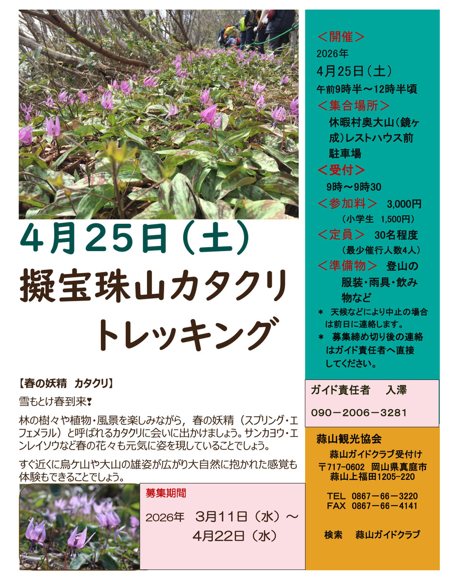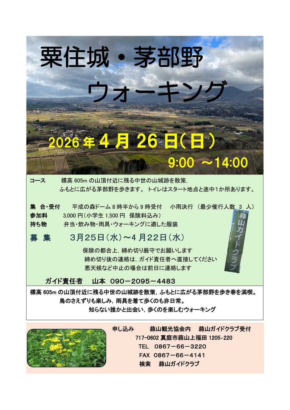 【日程】2026年4月25日(土)【時間】9:30 ~ 12:30頃【集合場所】休暇村奥大山 レスト...