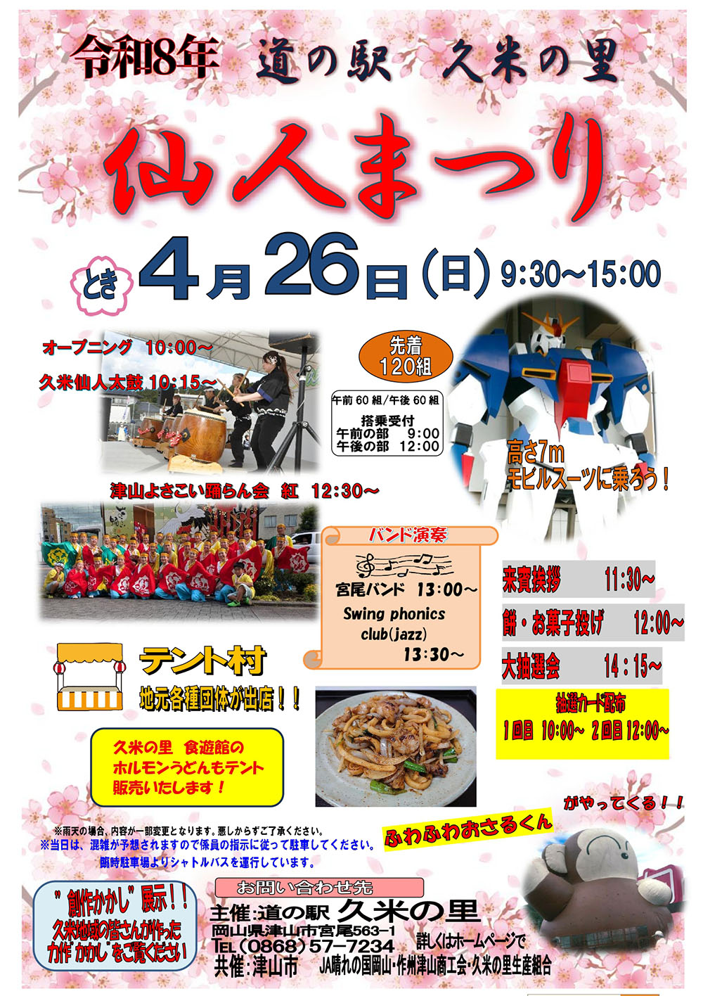 【日程】2026年4月26日(日)【時間】9:30~15:00【会場】道の駅 久米の里(津山市宮尾5...