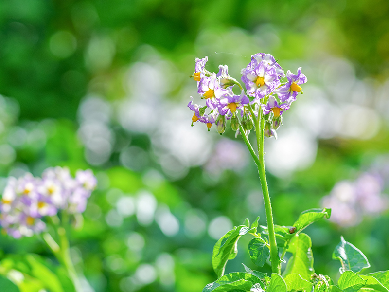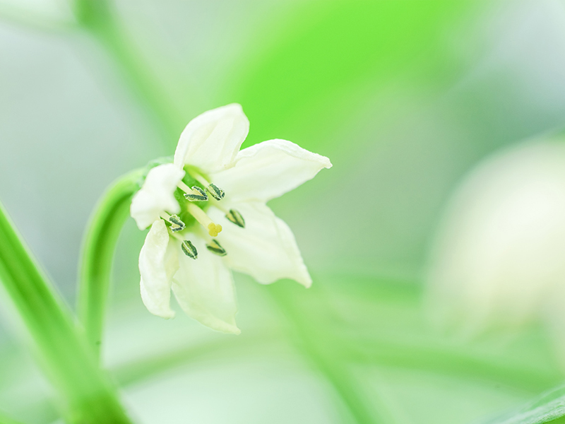 夏野菜の花は、実の姿とはまた違った魅力があります。きゅうりは薄黄色の小さな花を咲かせ、茎に寄り添うように控えめに開きます。ナスの花はうっすら紫を帯び、やや下向きに咲く姿がどこか涼やかで、風に揺れると初夏の空気に溶け込むようです。ピーマンは白く可憐な五弁花を咲かせ、つぼみから実へと移り変わる姿が目を楽しませてくれます。それぞれの花が実りへの第一歩として、静かに畑に季節の訪れを告げています。