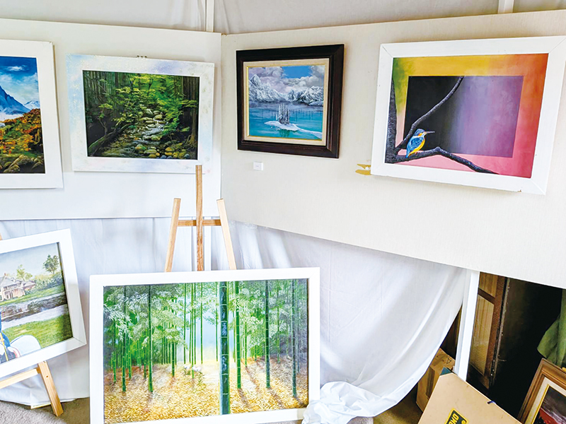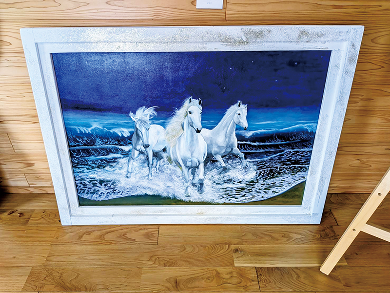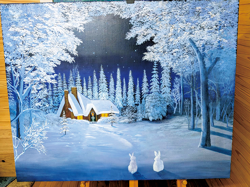 絵をかくきっかけは、都会で見た、有名作家の思い出がよみがえり、「自分もまねごとをしたくなり、絵筆をとりました」ということだ。「今も画家ごっこをして遊んでいます」と本人はいう。