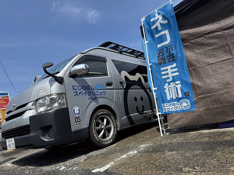 これは、野良猫の過剰繁殖を抑制することを目的とした、不妊去勢手術の専門病院となっており、ワゴン車を活用した移動式手術室で、獣医師の先生に地域へ出向いてもらい、手軽に、安価に、大量に手術を行っている。