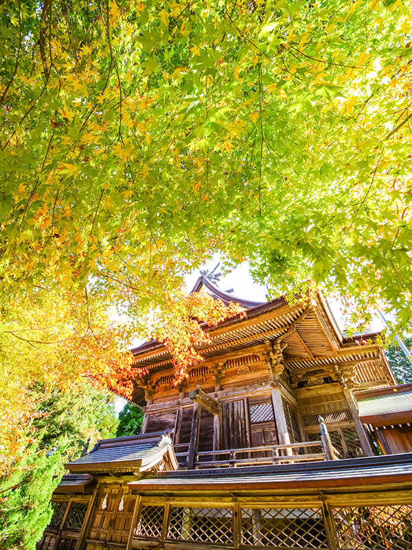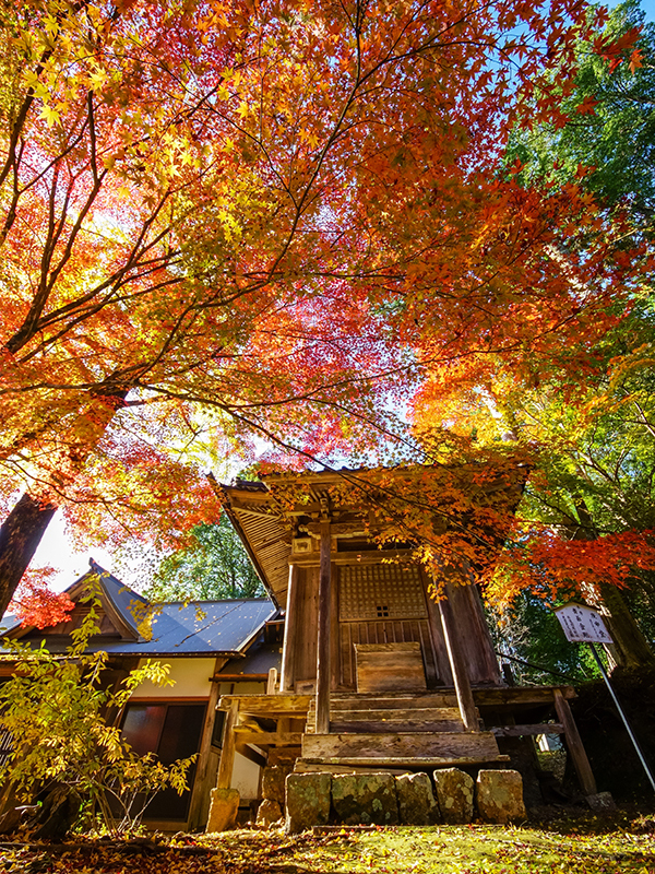木山神社奥宮は、山道を抜けた先に紅葉の彩りが広がる神聖な空間です。色と光が交錯する瞬間、奥宮の静けさと神秘性が一層際立ち、訪れる人の心を満たします。