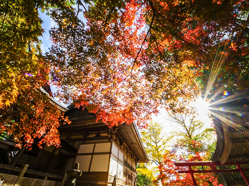 木山寺は秋、紅葉に囲まれた静寂の中で、光と影が織りなす色彩が一層鮮やかになります。山寺ならではの深い趣を感じられる場所です。