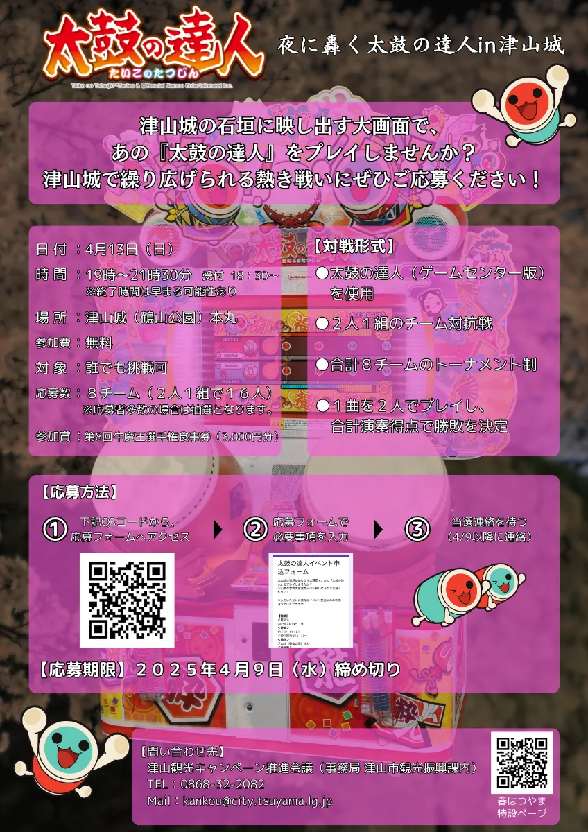 【お問い合わせ】津山観光キャンペーン推進会議(津山市観光文化部観光振興課内) TEL:0868-32-2082