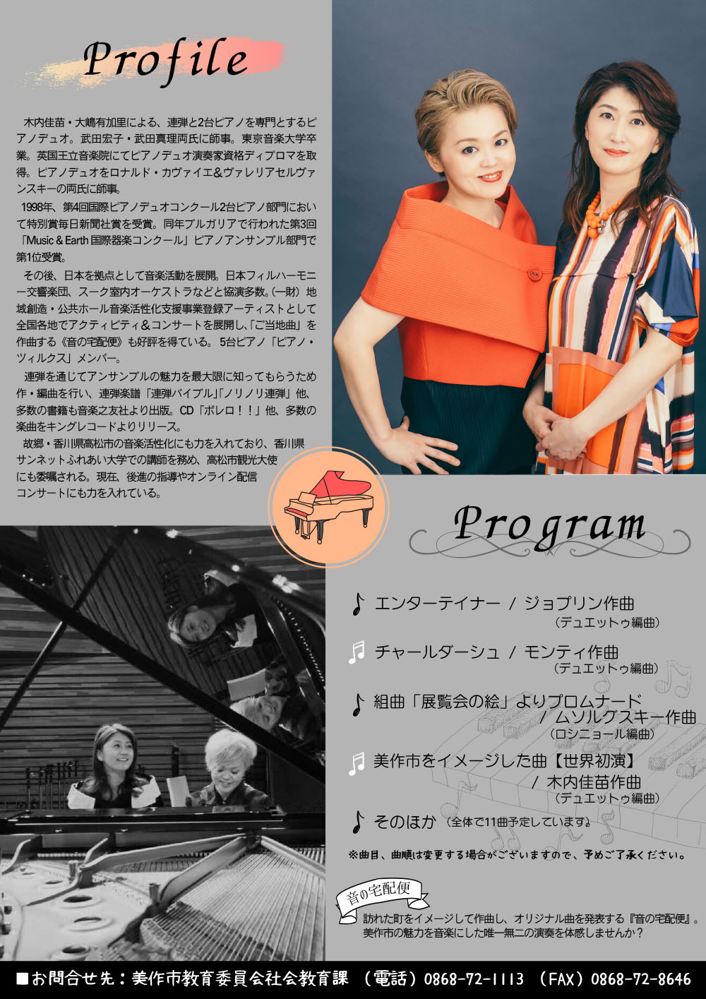 【お問い合わせ】美作市教育委員会社会教育課 (電話)0868-72-1113