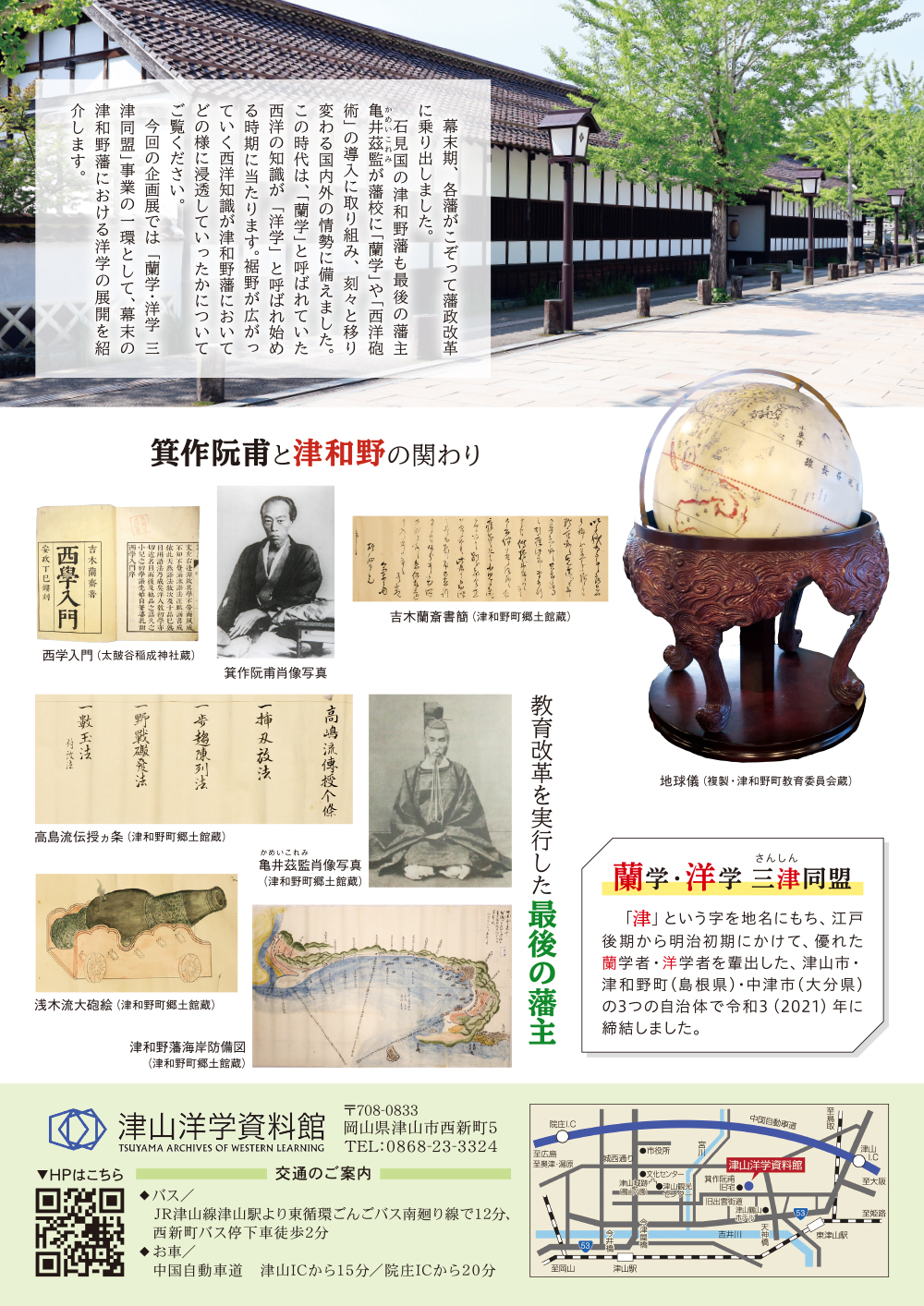 【お問い合わせ】津山洋学資料館 TEL:0868-23-3324