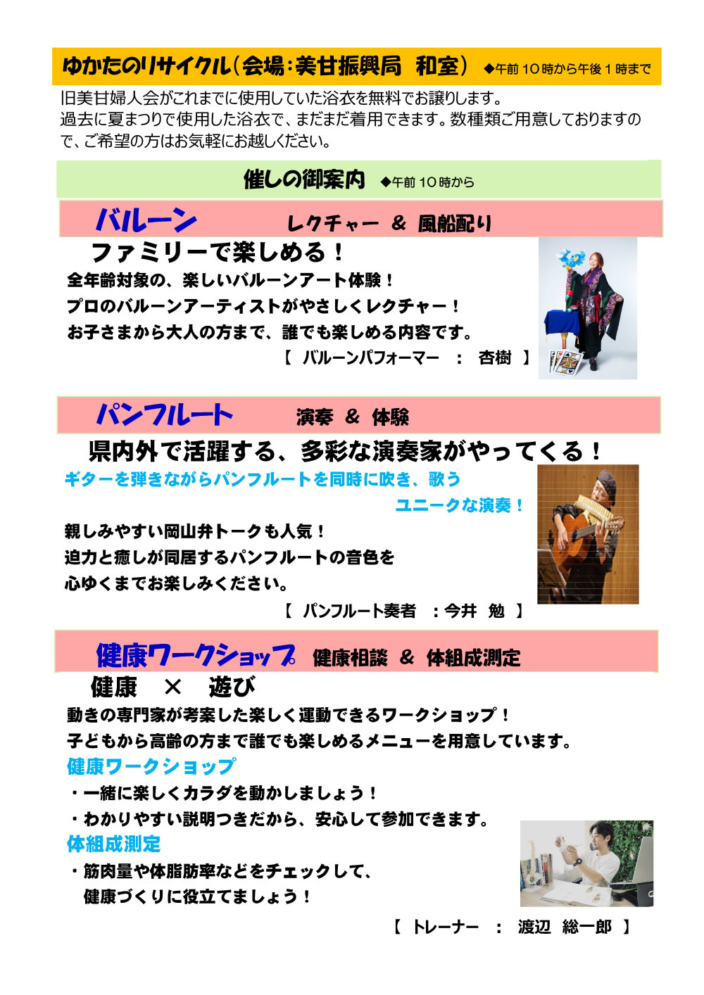 【お問い合わせ】美甘地域づくり委員会事務局(美甘振興局 TEL:0867-56-2611)