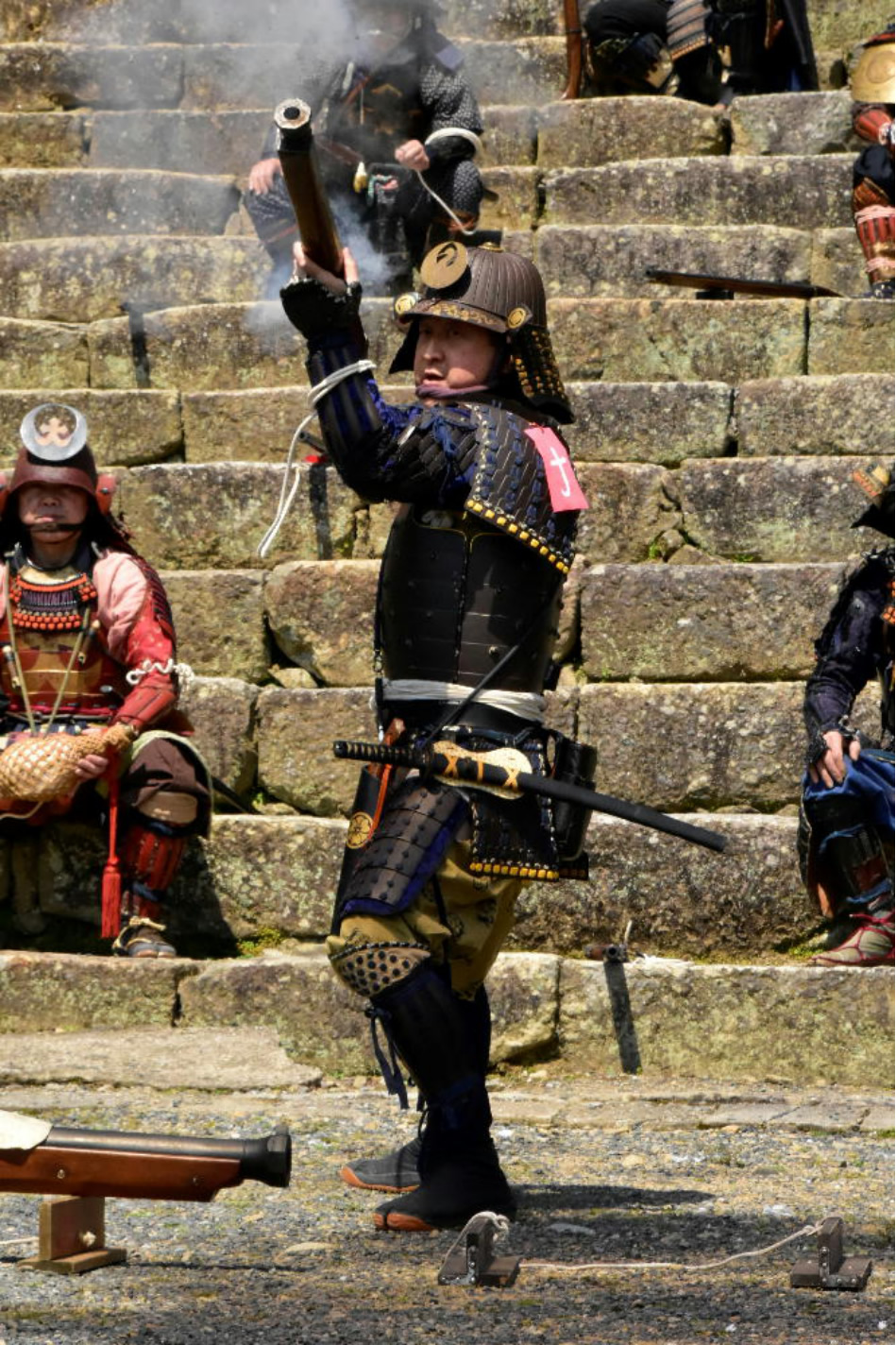 4月1日に津山城(鶴山公園)で行われた、さくらまつりの一大イベント、備州岡山城鉄砲隊の演武に目を見張...