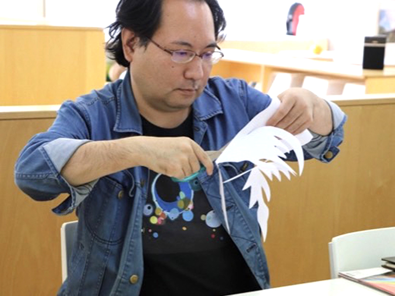 津山市久米町 梅田直人さんデイサービス施設を中心に福祉センターなどで、お年寄りに切絵教室を行っている...