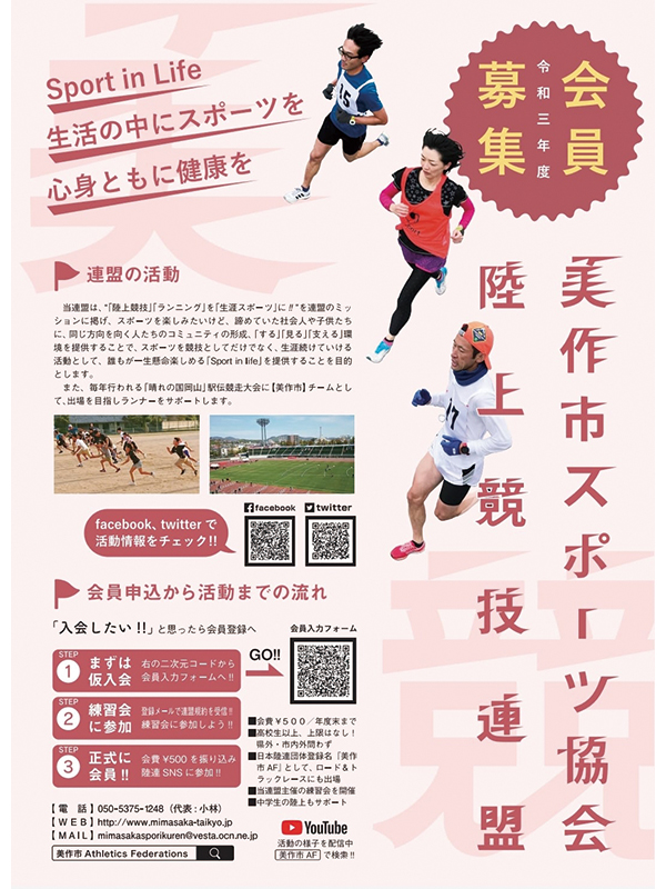 すこし、気が早いですけど… 来年度の会員募集です。 当連盟は岡山県美作市を拠点、陸上競技を通じて、地...