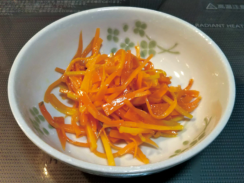 材 料ニンジン 食塩オリーブオイル焼き鳥缶、ベーコンなど千切ニンジンを耐熱容器に入れて、食塩少々と、...