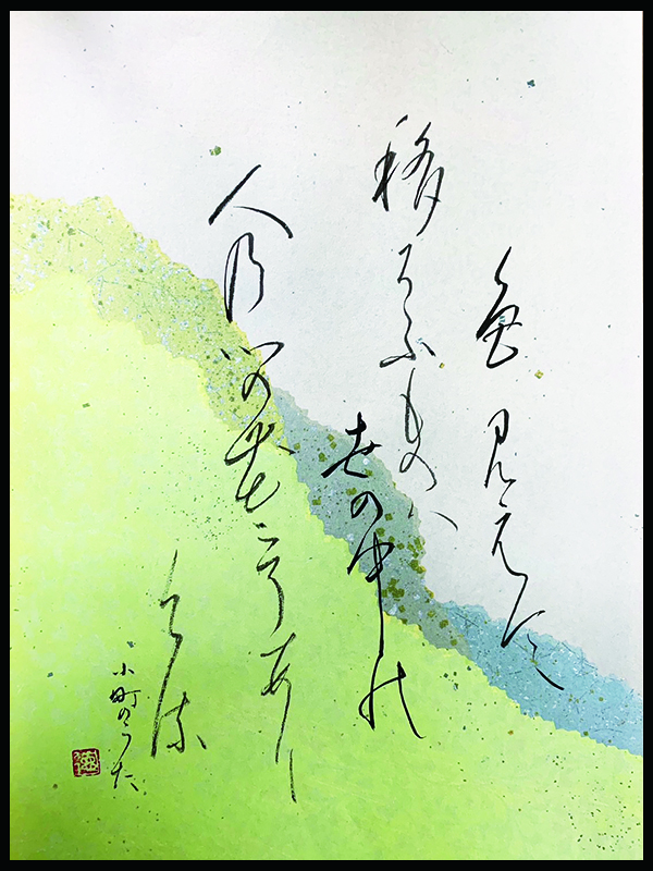 色見えで色見えで(天)移ろふものは(八)世の中の(能)人の(乃)心の花に(ニ)ぞ(曽)ありけ(介)る...