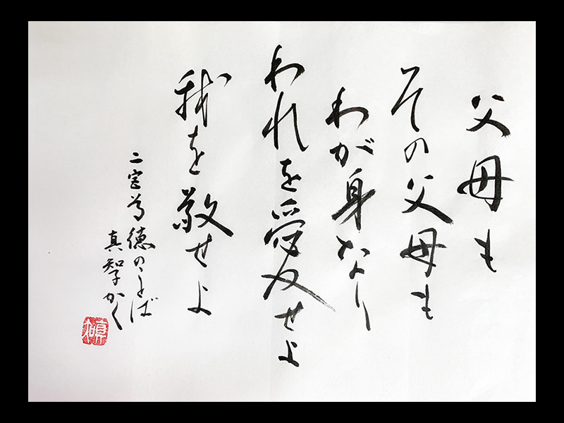 父母も父母(ちちはは)も その父母(ちちはは)もわが身なり われを愛せよ 我を敬せよこれは二宮尊徳...