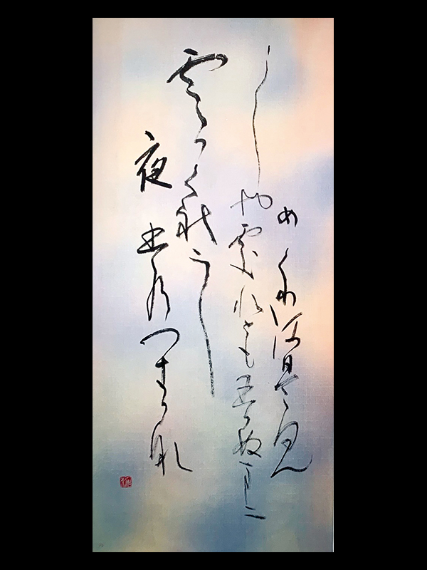 雪月花大作に挑戦!紙のお洒落な色合いと淡墨で書かれた「雪月花」力強い作品です。kenka遊之会代表■...