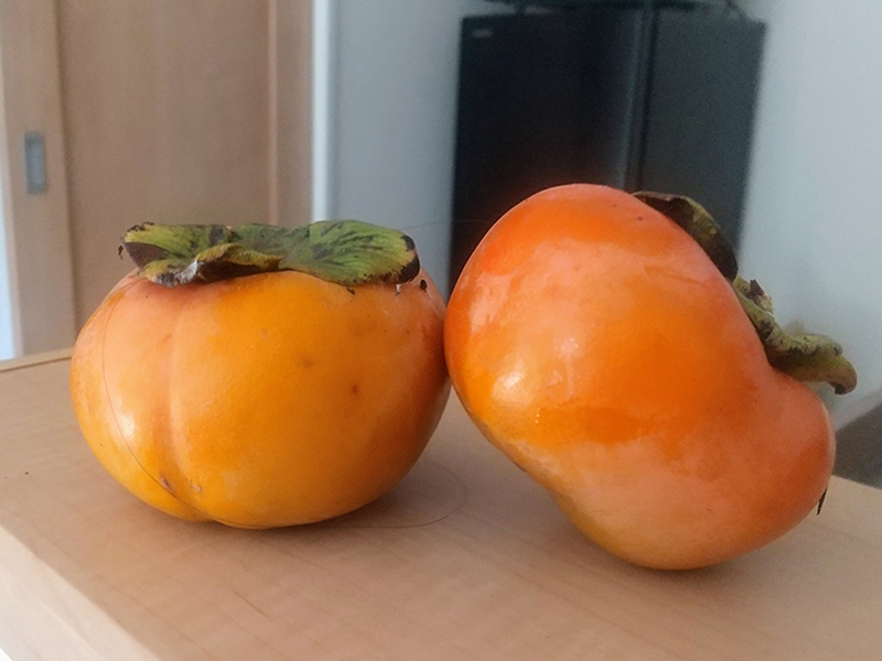 ご近所の方の庭先にある柿の木の実がオレンジ色になってています。毎年、寒くなると完熟して下に落ちている...