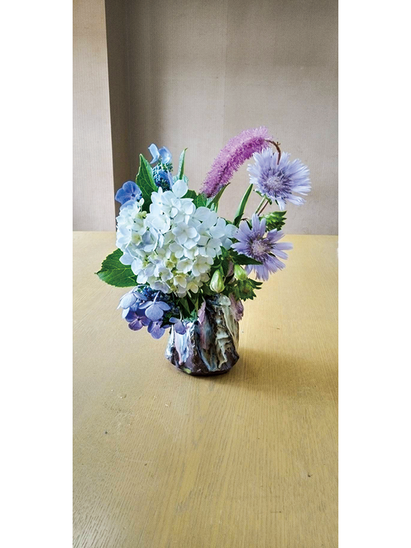 白いダリア、紫のリアトリス、薄紫のストケシア。庭に咲いているこれらの花を切って玄関に飾った。鬱陶し...