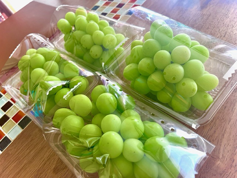 店頭にぶどう並ぶ。ピオーネをよく見かけていたけどついに大好きなシャインマスカットがお目見え。食べたい...