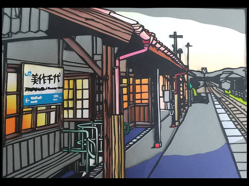 美作千代駅(裏)僕が初めて風景の切り絵に挑戦した作品です。今も残る木造駅舎です。昔、僕も毎週この駅で...