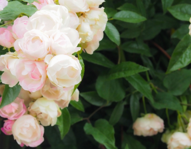 去年友だちにイングリッシュガーデンへ連れて行ってもらった。バラの花が咲き始めで、早咲きの白いアイス...