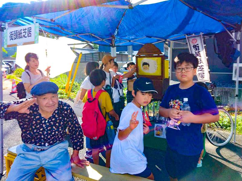 今日のゆのごうマルシェ街頭紙芝居実演、初の試みで本格的に投げ銭ライブ紙芝居実演した所、お客様に大好評...