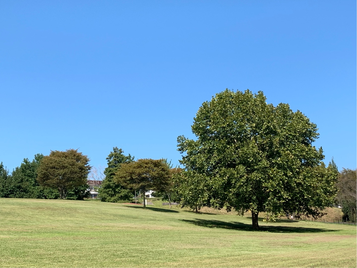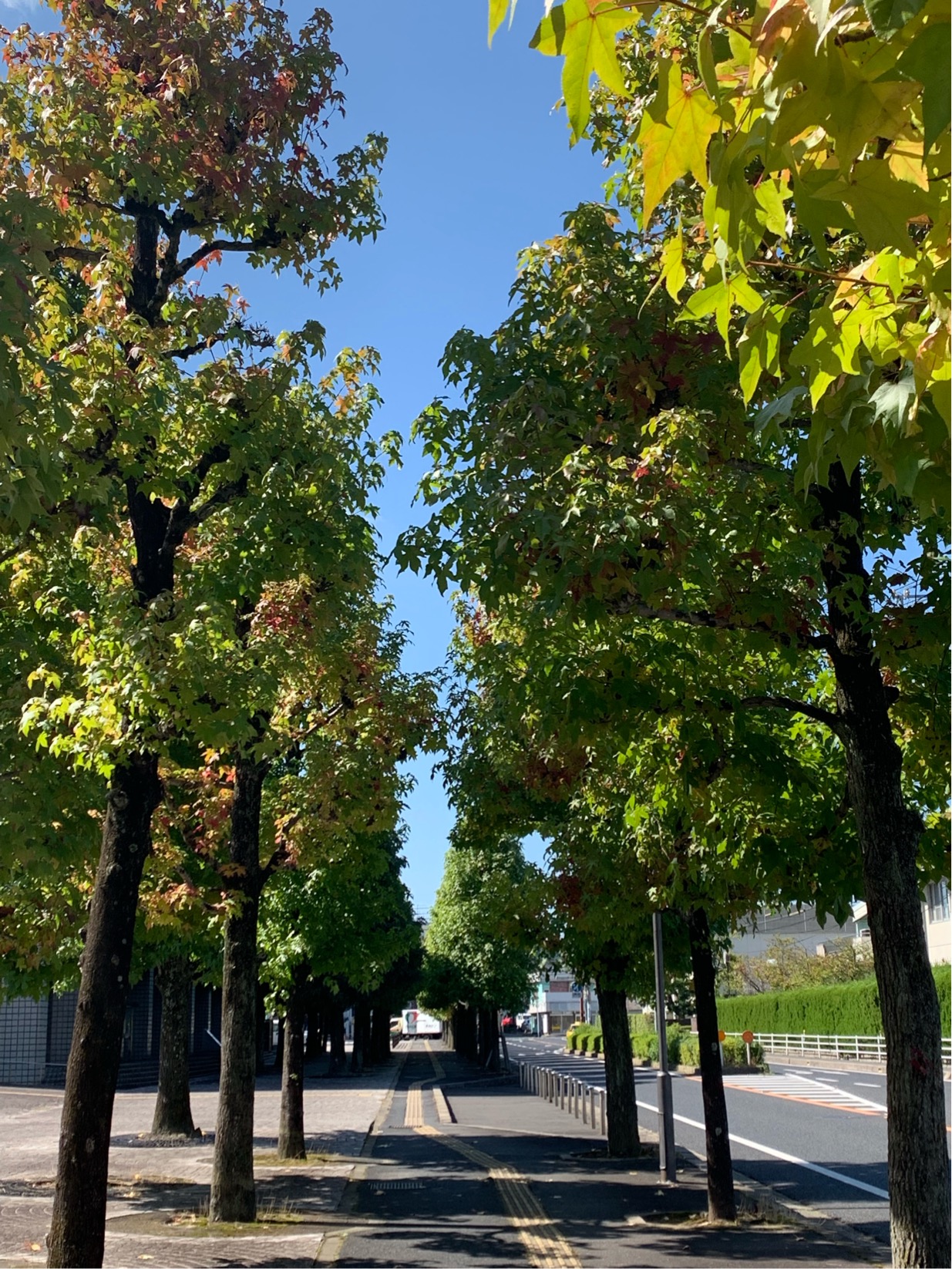 津山市山北の津山市役所前のアメリカフウが少しずつ色づいています。もうすぐ紅葉ですね。陽の当たる所と日...