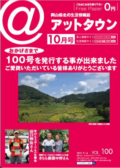 本日アットタウン10月号発刊しました。スーパーコンビニ設置店さまでどうぞお持ち帰りください。稔りの秋...