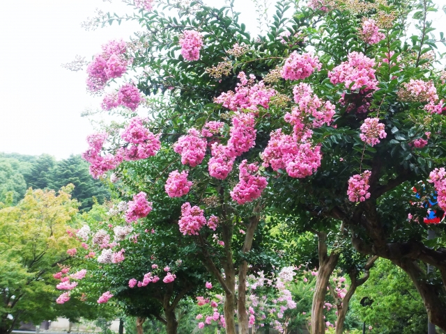 つるつるとした木肌は猿も滑り落ちる。サルスベリの名前の由縁だそうです。赤、白、ピンクとありますが、白...