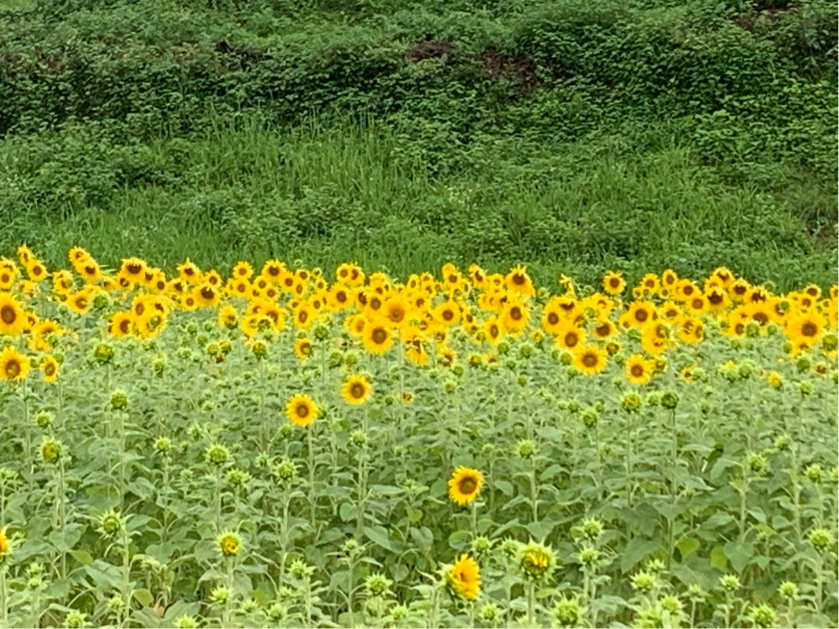 台風の影響でぐずついたお天気の中。午前中行きました。美咲町塚角のひまわり畑雨の中いろんな表情を見せて...