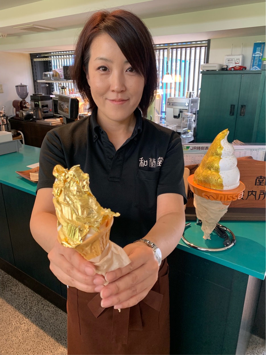 城東観光案内所 和蘭堂で7月20日から津山金箔ソフトが販売されます。何という圧倒的な存在感!クリー...