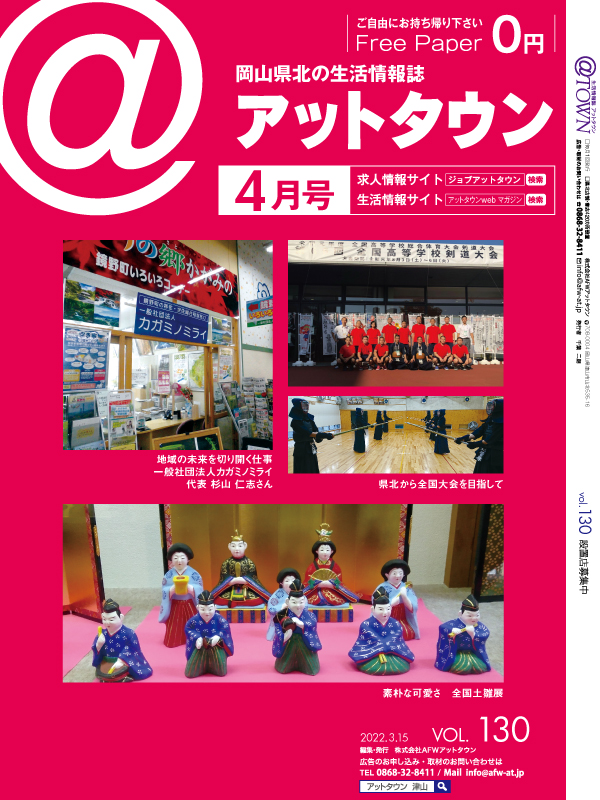 今月もアットタウン無事発刊。アットストーリのコーナーでは、津山工業剣道部とカガミノミライさんにお話を...
