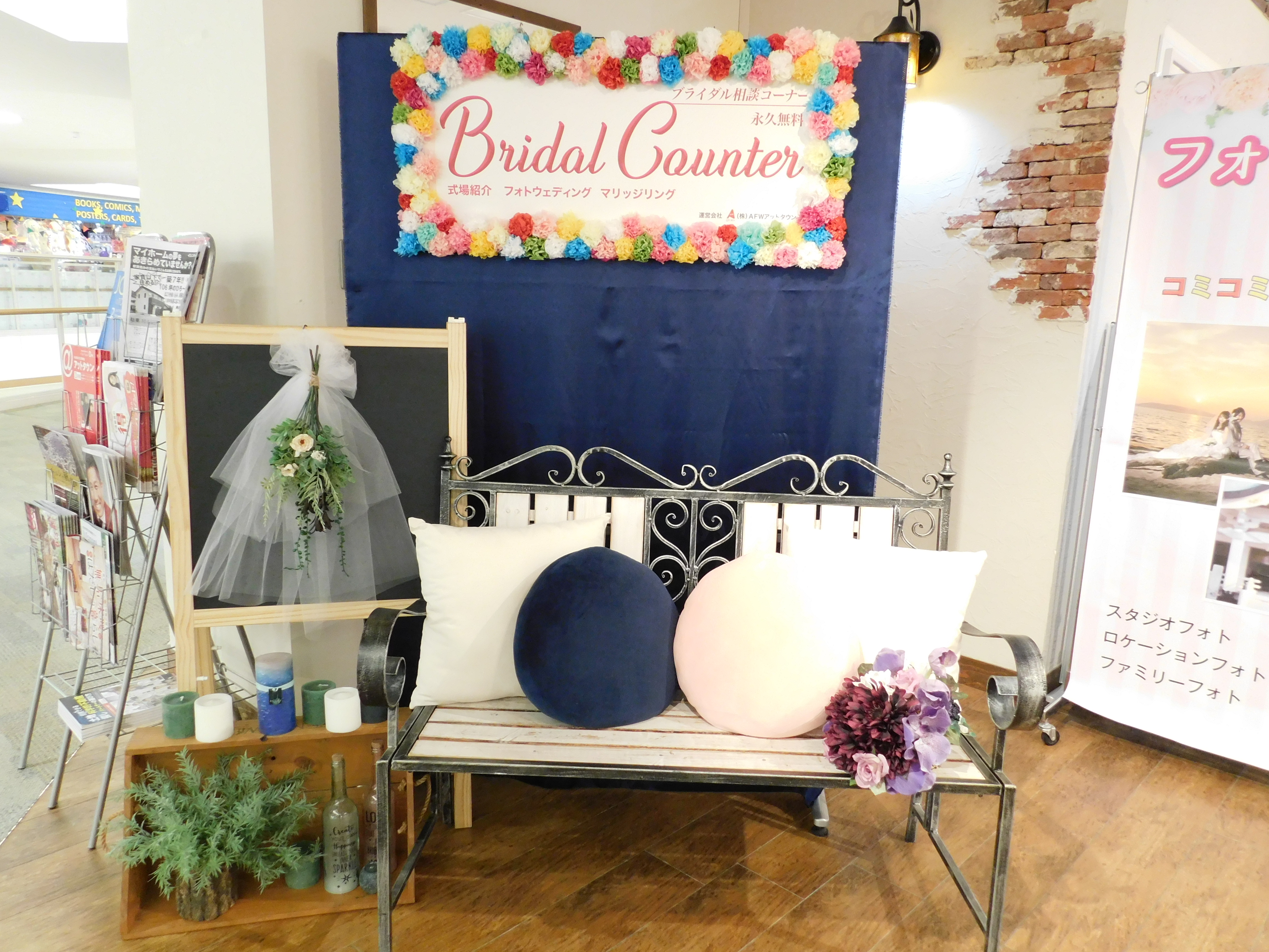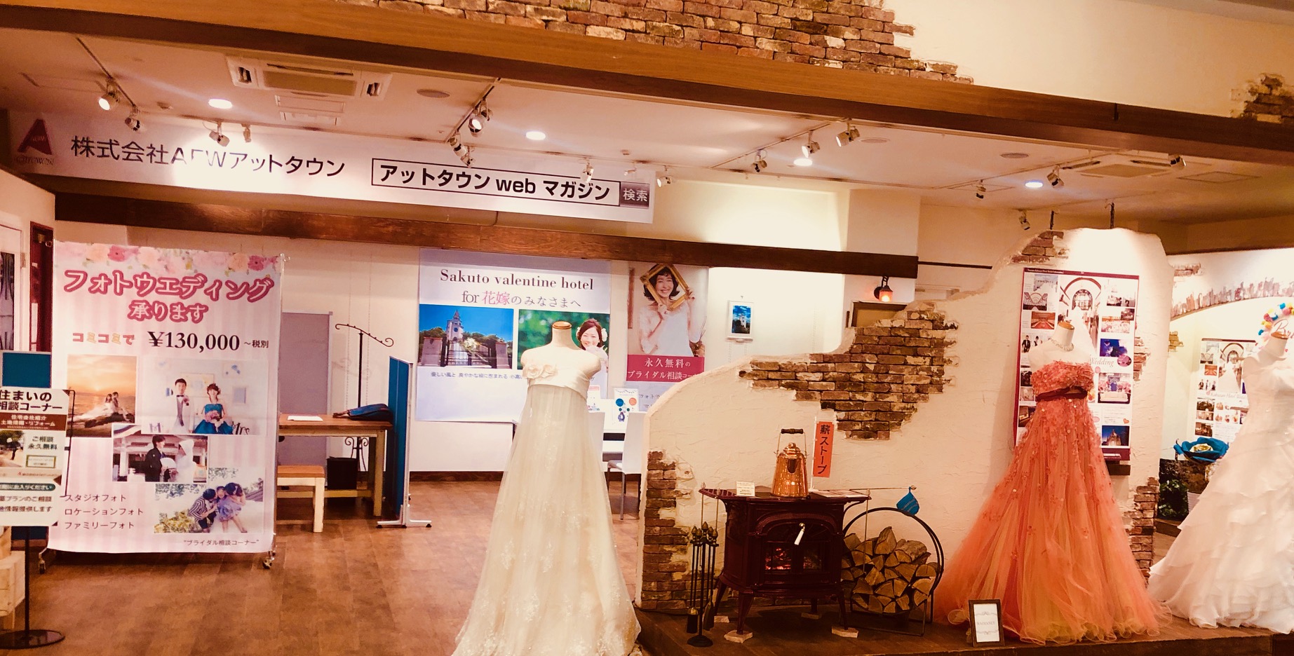 ブライダル相談コーナーの安川です。津山市河辺のイオンモール津山2階アットタウン店舗前にフォトスペース...