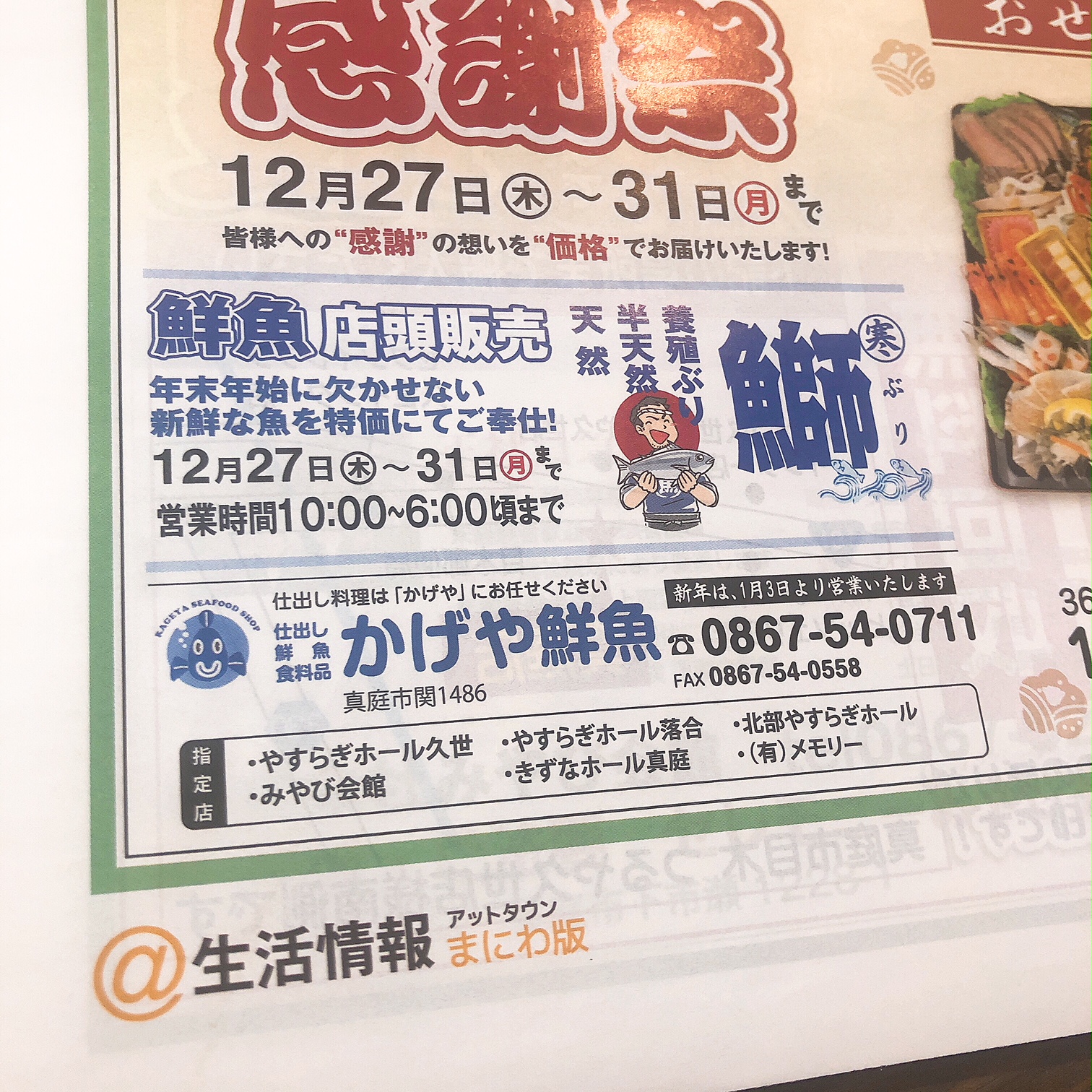 本年の最終版ですアットタウン折込版は毎月第4土曜日に折込、県北の新聞53,350部 ポスティング5,...