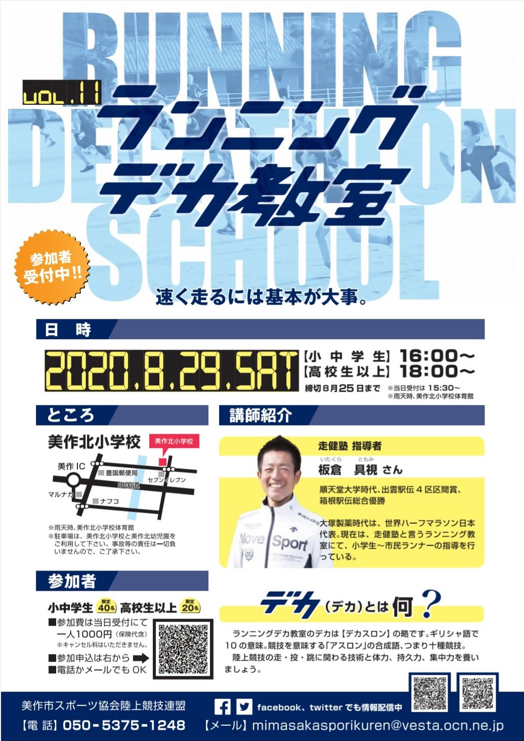 夏企画お待たせしました!「ランニングデカ教室」を開催します。特別講師板倉氏。日時2020年8月29日...