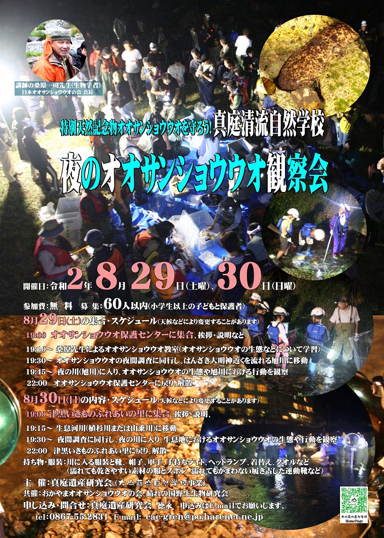 特別天然記念物オオサンショウウオを守ろう!日時2020年8月29日(土)~30日(日)19:00~2...