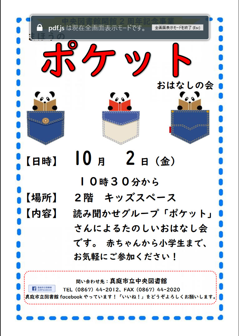 毎月、絵本の読み聞かせ会を行っています。読み聞かせグループ『まほうのポケット』さんによる楽しいおはな...