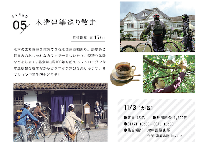 木材のまち真庭を体感できる木造建築物巡り。歴史ある町並みのおしゃれなカフェで一息ついたり、梨狩り体験...