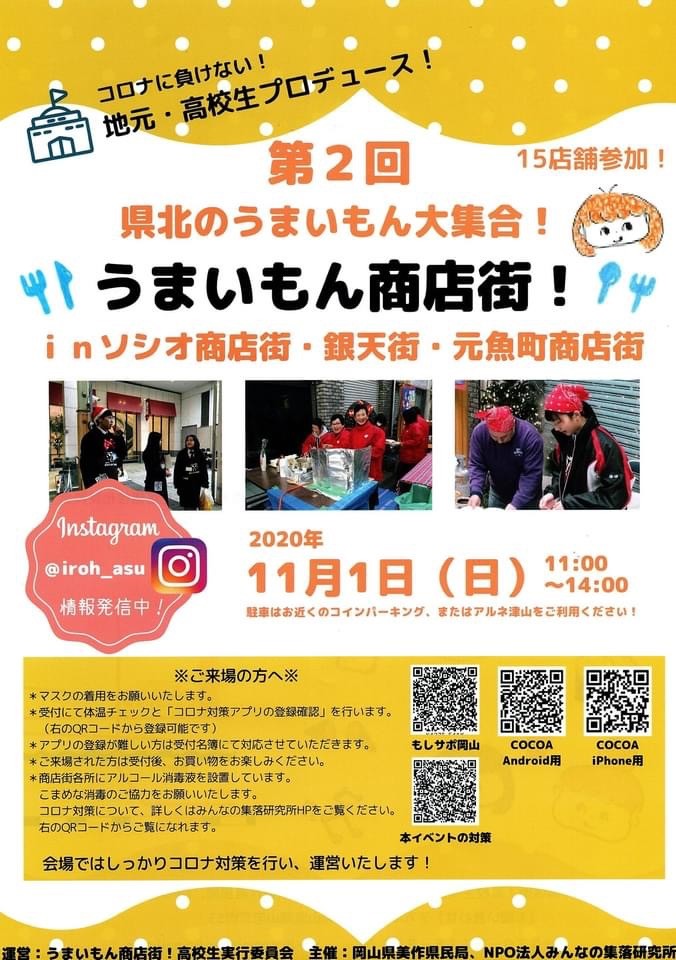 このイベントは地元の高校生が運営・企画し、岡山県北地域の特産品販売をされている地域の方や移動販売をさ...