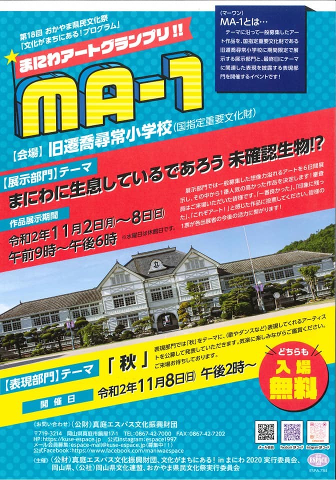 今年も秋に開催「まにわアートグランプリ!!MA-1(マーワン)」。【展示の部】【表現の部】があります...