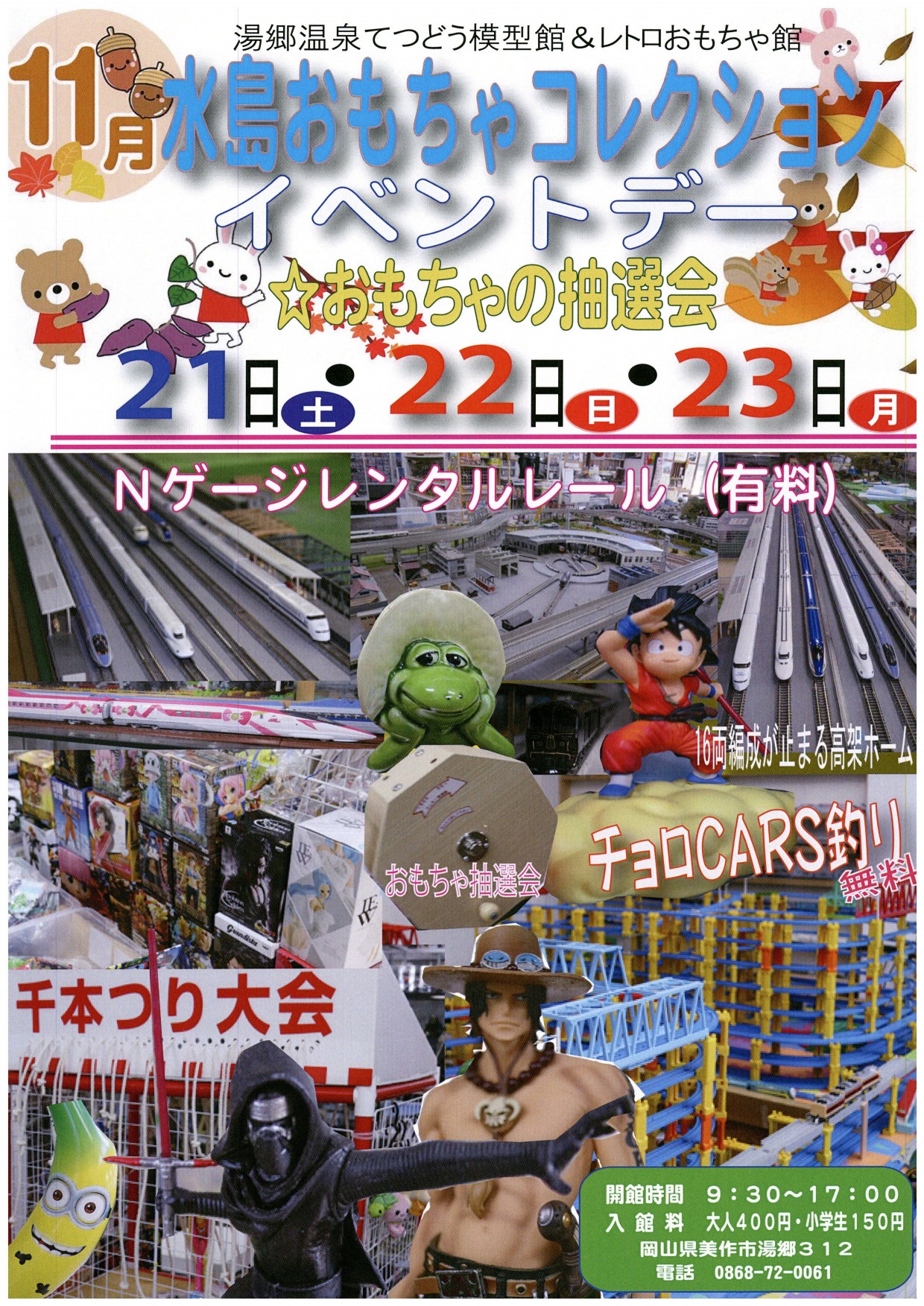 日時2020年11月21日(土)~11月23日(月)場所湯郷温泉てつどう模型館amp;レトロおもちゃ...