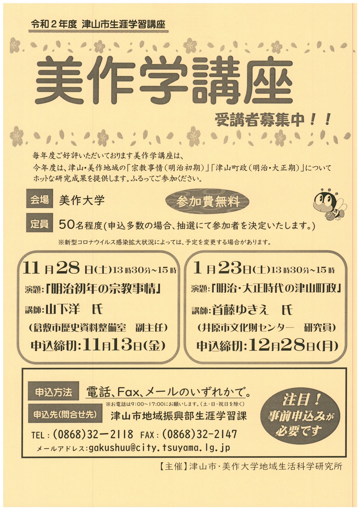 美作地域(津山市、真庭市、美作市、勝央町、鏡野町、奈義町、美咲町、久米南町、西粟倉村、新庄村)で行われるイベントを紹介しています。