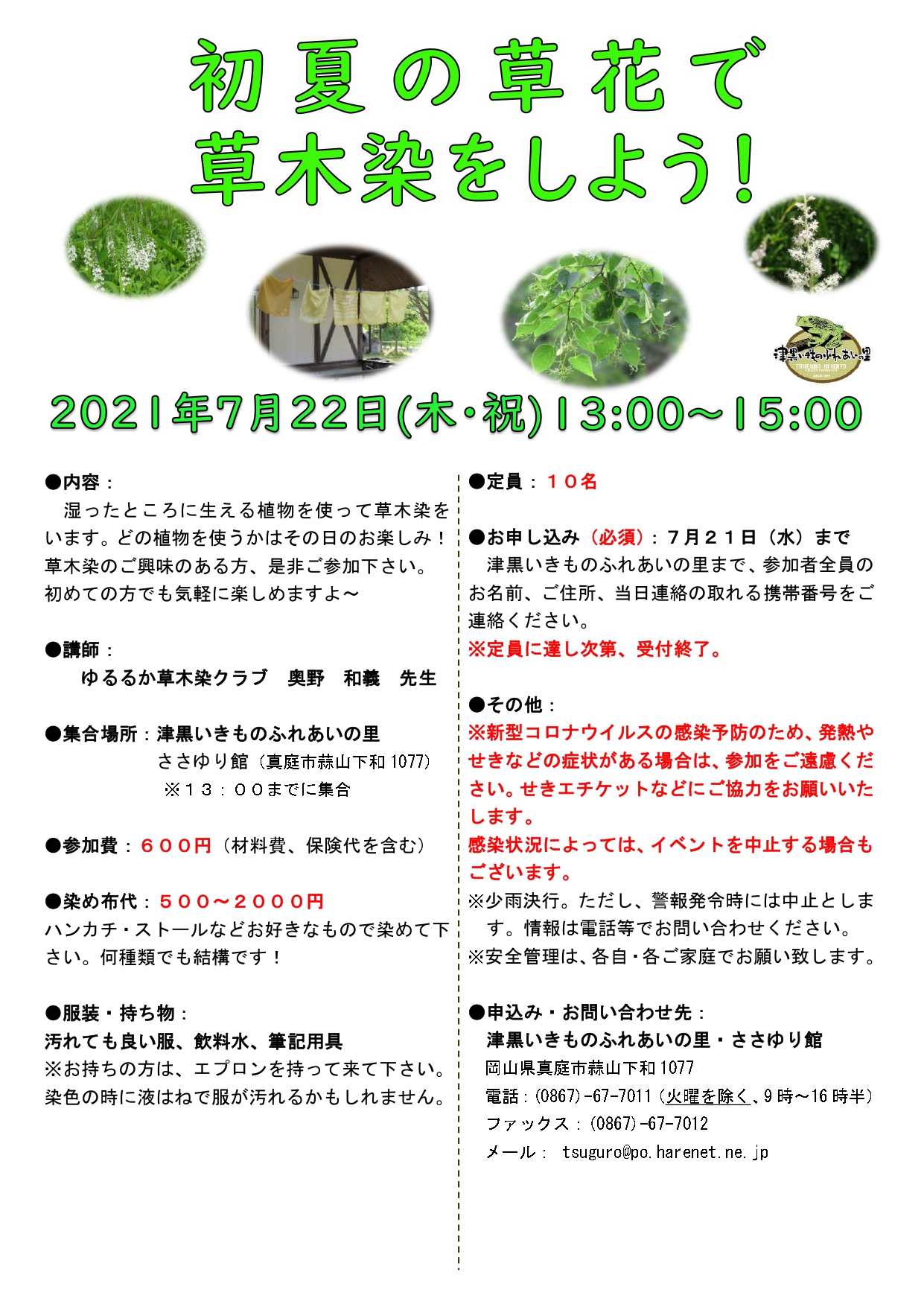 日時2021年7月18日(日)場所グリーンヒルズ津山リージョンセンター津山市大田920【問い合わせ】...