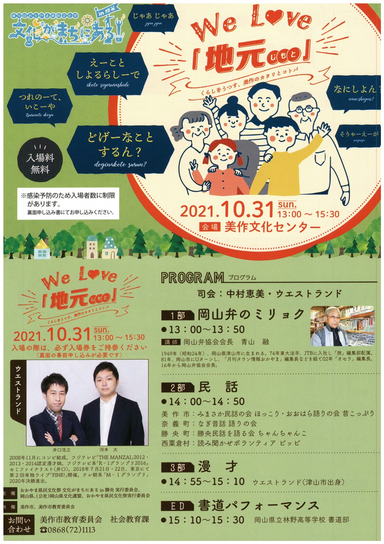 日時2021年10月31日(日)場所美作文化センター美作市湯郷826-4【問い合わせ】美作文化センタ...