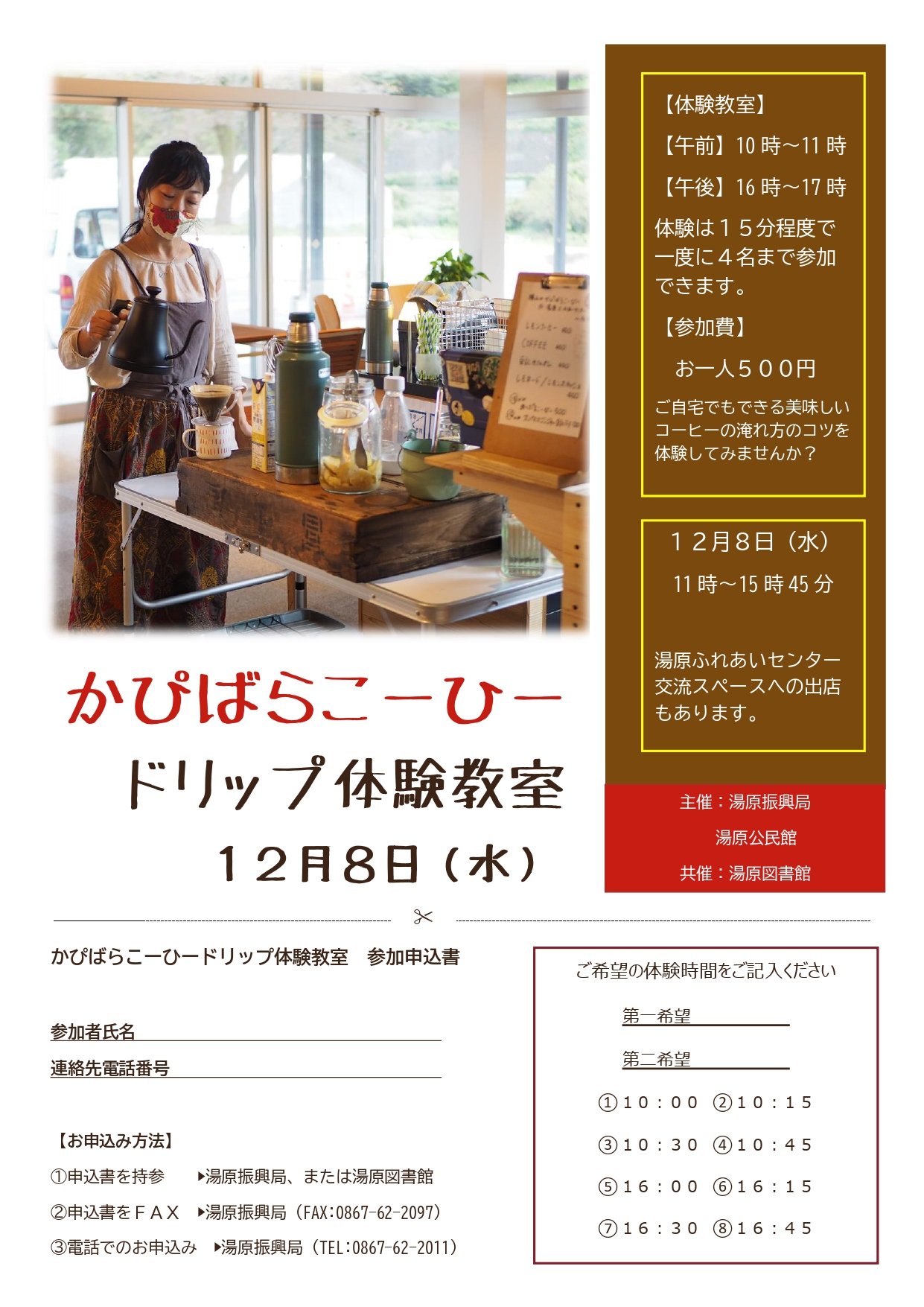 ご自宅でもできる美味しいコーヒーの淹れ方のコツを体験してみませんか?体験は15分程度で一度につき4名...