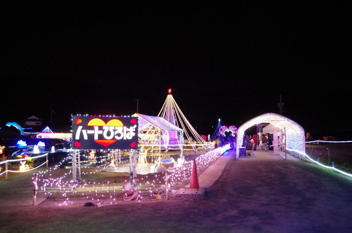 地元有志で作り上げた七色のイルミネーション。ハート型の回廊や、鳥居を抜けた先に設置された縁結びスポッ...