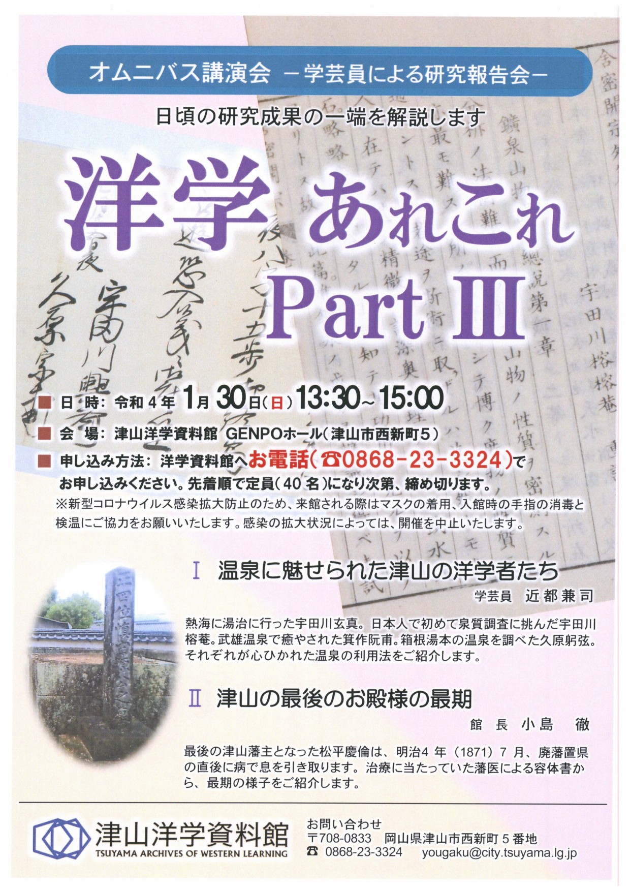 日時2022年1月30日(日)場所勝央美術文学館 津山市西新町5【問い合わせ】津山洋学資料館 086...