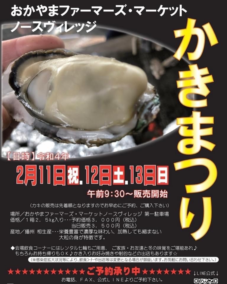 毎年恒例、冬の一大イベントかき祭り。相生の契約漁師さんがノースヴィレッジ用に育てた新鮮な牡蠣を今年も...