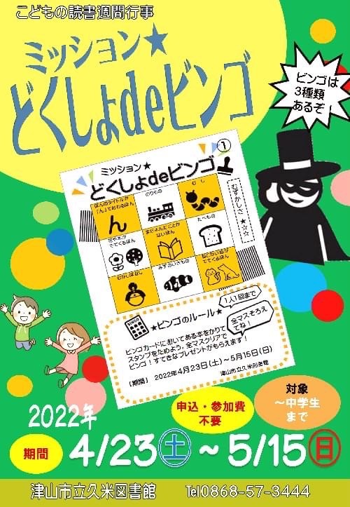 日時2022年4月23日(土)~5月15日(日)場所津山市立久米図書館津山市中北下1271【問い合わ...