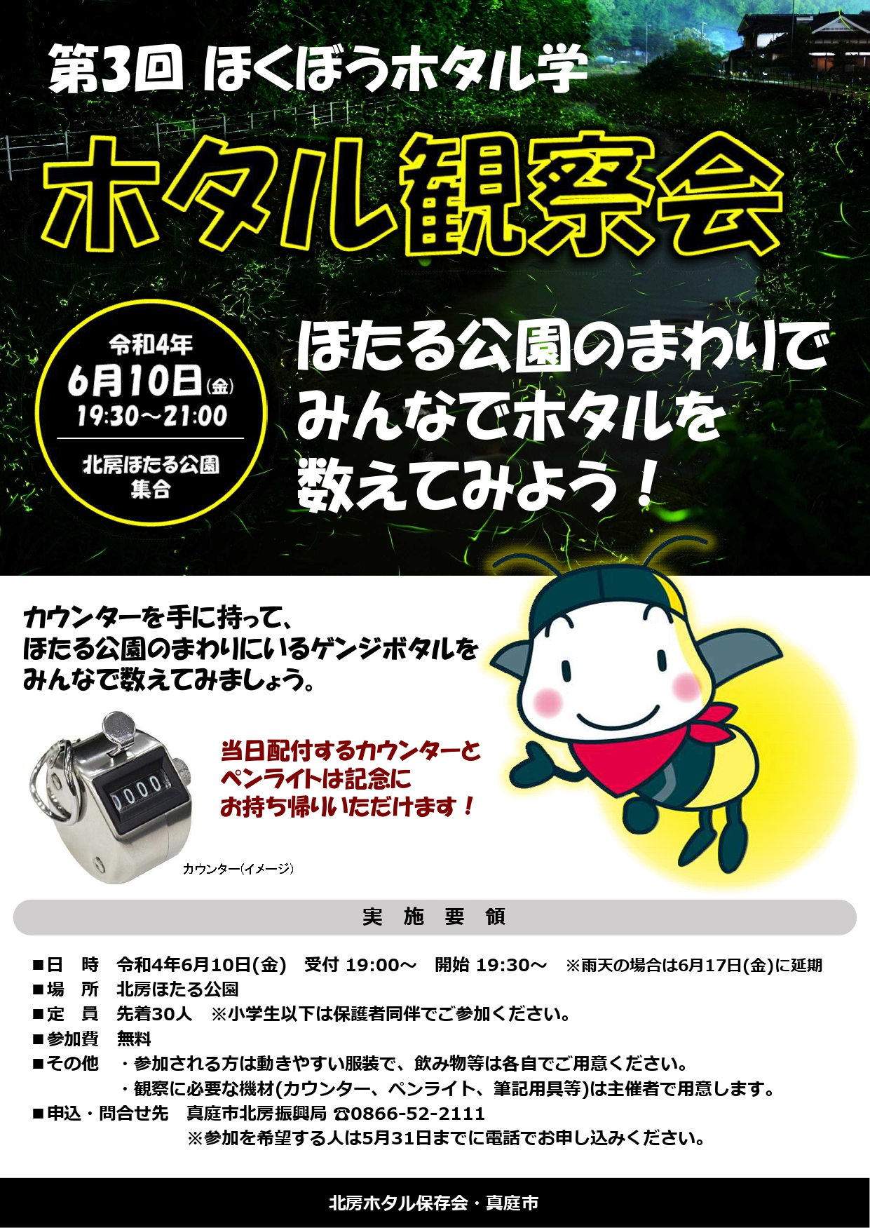 北房ホタル保存会では、ホタルの知識について学ぶ「ほくぼうホタル学」を開催しております。第3回の講座と...